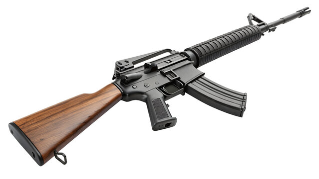 Rifle isolated on white background, M-16 automatic machine gun on White Background PNG File.