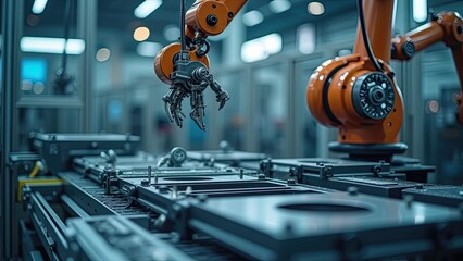 Industrial robotic arm assembling components in a modern manufacturing facility