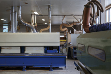 Inside a wood work factory in the netherlands. machines used for processing wood.