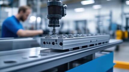 Precision metal machining process with a CNC machine tool and operator in a modern manufacturing facility