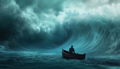 Man Battles Massive Wave While On Board Boat In The Ocean In A High-Stakes Encounter With A Powerful Tsunami