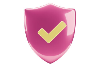 Isolated magenta shield with checkmark signifying security, protection and online safety