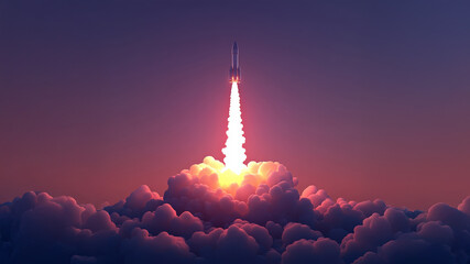Abstract night sky illustration above rolling blue and magenta neon clouds
