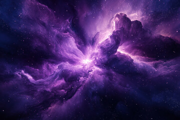 Glowing neon square amidst vibrant cosmic clouds and sparkling effects