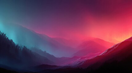 Abstract digital landscape showing undulating wave patterns illuminated by vibrant neon lights, creating a futuristic vision of data, technology, and energy flow