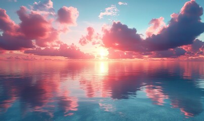 Vibrant Magenta Sunset Sky Illuminated With Soft Clouds and Orange Horizon Creating Dramatic Scene.