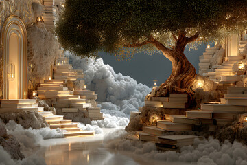 Ethereal fantasy portal with radiant light in magical cloudscape