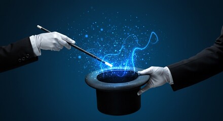 Magician performs classic rabbit trick in vibrant theater setting at night