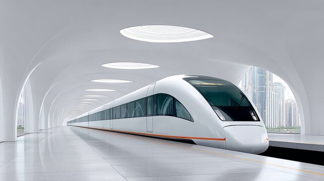 Futuristic Maglev Train Gliding Through Urban Tunnel, Speed and Modernity