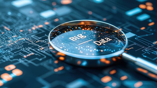 Focus on Big Data through a Magnifying Glass and Digital Background