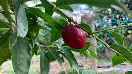 Mahkota dewa fruit or Phaleria macrocarpa on tree. Called God's crown.
