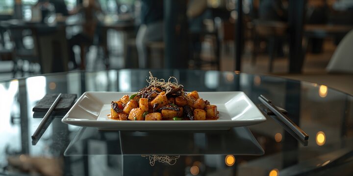 Tofu and black fungus dish served on a white ceramic plate for a nutritious meal setting, highlighting Asian dining customs