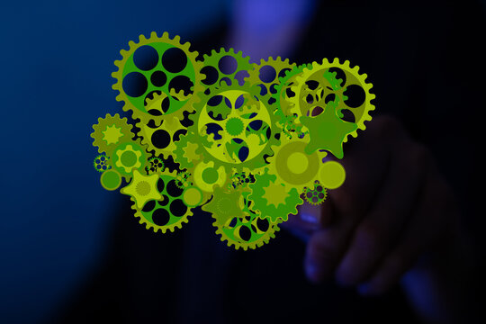 Technician maintaining equipment with energy icons overlay