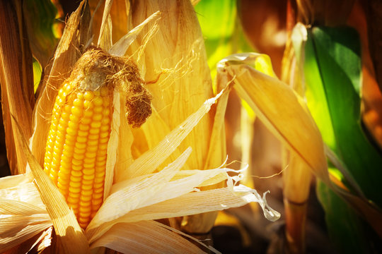 Mais, Maiskolben, Maispuppe in Sonnenlicht