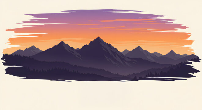 Mountain Landscape Silhouette at Sunset with Orange and Purple Sky