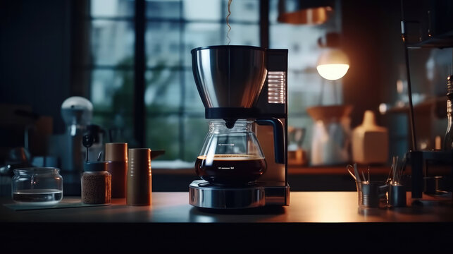 Coffee maker for making and brewing coffee in the kitchen