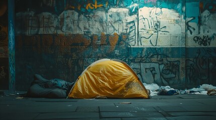 tents of homeless people living in the streets, concept of poverty and struggle