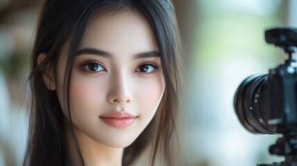Vibrant makeup artistry showcases vivid colors and glowing skin in a striking portrait during a creative beauty session