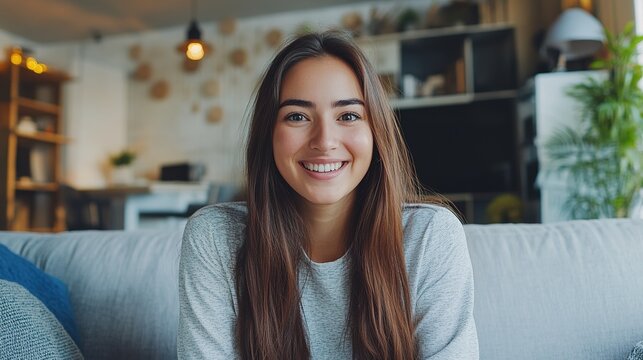 Female vlogger recording at home in cozy setting with camera interface