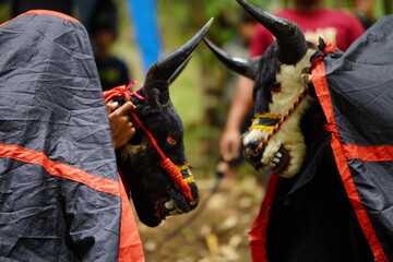 black bull costume orange ribbon forest - bantengan malang