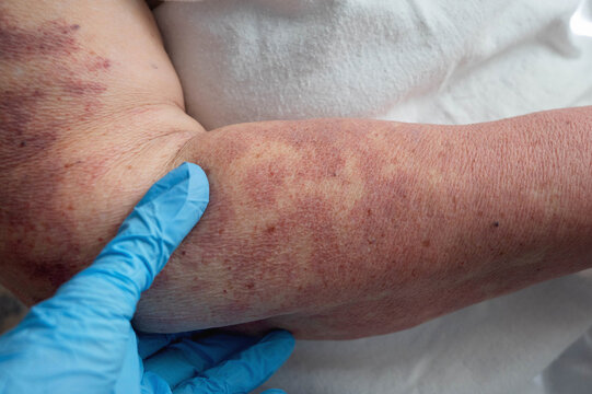 Capillary malformation on the female hand. Medicine, health, genetics, medical examination concept.