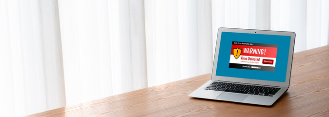 Virus warning alert on computer screen detected brisk cyber threat , hacker, computer virus and malware