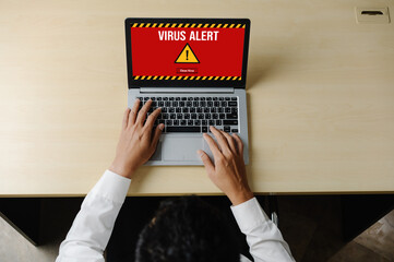 Virus warning alert on computer screen detected modish cyber threat , hacker, computer virus and malware