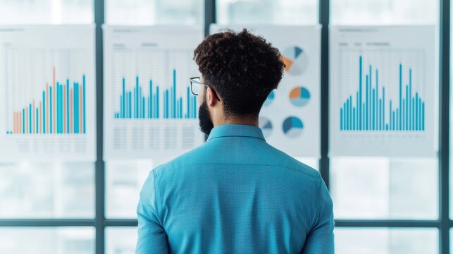Man Analyzing Data Visualizations In Modern Office Setting Images