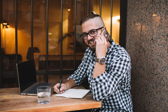 Urban lifestyle and technology: man checking subscribers on smartphone