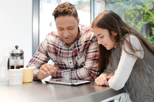 Man Drinking Coffee While Using Tablet In Modern Kitchen Images