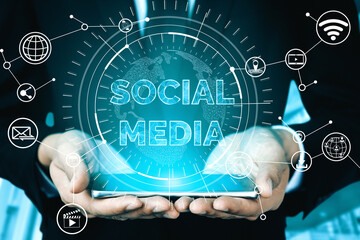 Social media and young people network conceptual. Modern graphic interface showing online social connection network and media channels to engage customer interaction in the digital business.