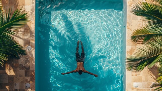 Smiling man enjoying sunset in infinity pool with refreshing cocktail