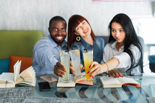 Man Enjoying Coffee And Reading Book In Modern Cafe Images