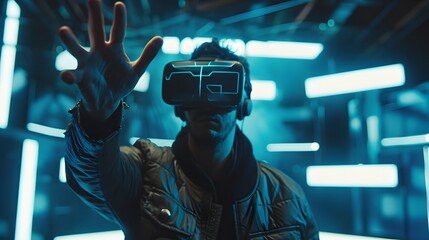 Innovative man experiencing vr in high-tech environment