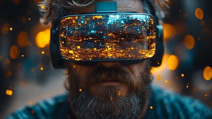 Immersive Virtual Reality Experience: A Man Exploring a Digital World
