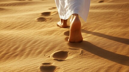 A man s spiritual journey following jesus  footsteps in the sand on a path of faith