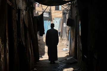 Silhouette of a man hiding in the shadows of an alley