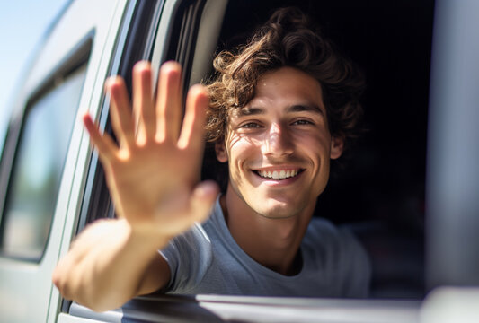 a handsome young man smiling happily waving and saying goodbye, Ai generated Images