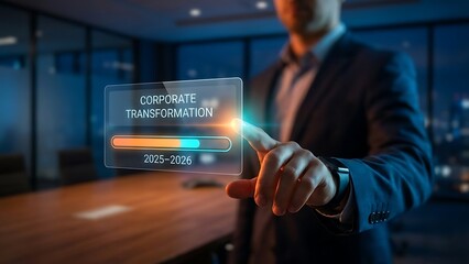 Businessman interacting with digital interface.