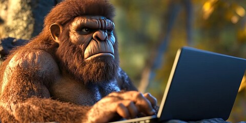 Man concentrating on laptop in rustic cabin maintaining email efficiency