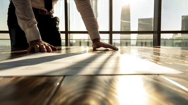 Man meditating in front of window at sunset, finding peace and mindfulness