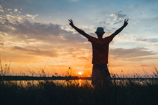 USA army soldier saluting on a background of sunset or sunrise and USA flag. Greeting card for Veterans Day, Memorial Day, Independence Day. America celebration. 3D-rendering.