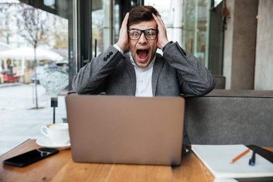 Angry man and woman sitting at table looking at each other with hatred and disgust