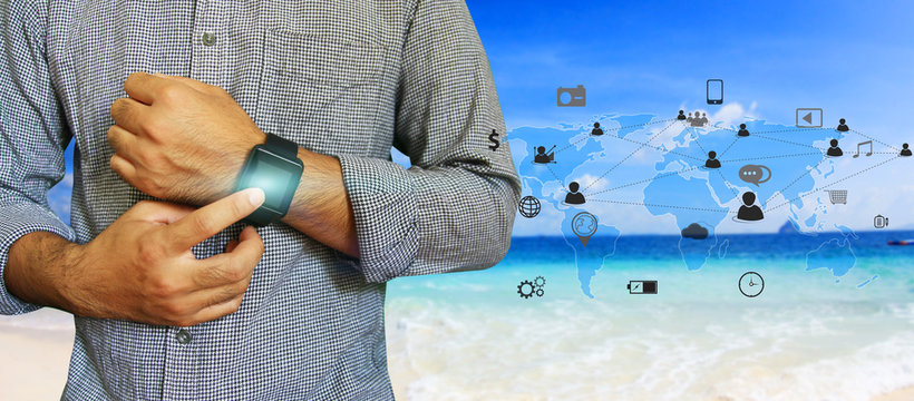 Man use smart watch connection online technology
