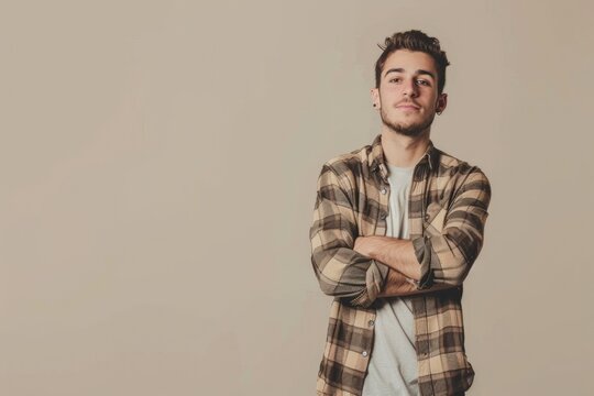 waist up shot of a originarian mexican feature man standing with hands in pockets on a urban place with land vehicles and the sun lights behind him