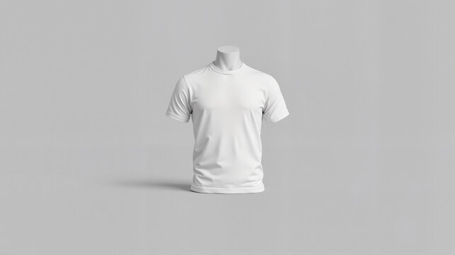 Man presenting a blank white t shirt from the front and back, providing a template for custom designs and branding opportunities against a gray background