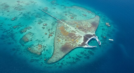 Elegant and weightless, giant manta ray soars through the water like a bird in flight. With its expansive wingspan and diamond-shaped body, it dances in the ocean currents with calm, hypnotic beauty