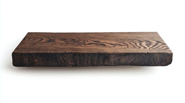 Rustic Wooden Shelf with Dark Grain Pattern on White Background