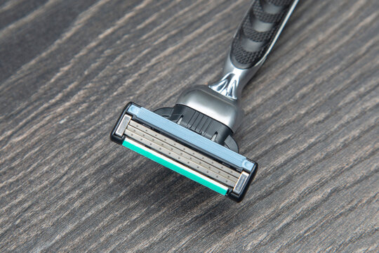 razor blade on light background. manual face shaving machine. stubble blade. depilation