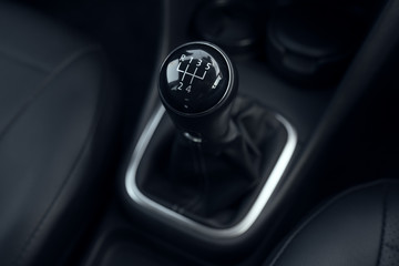 Car interior. manual transmission gear shift.
